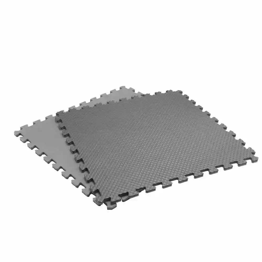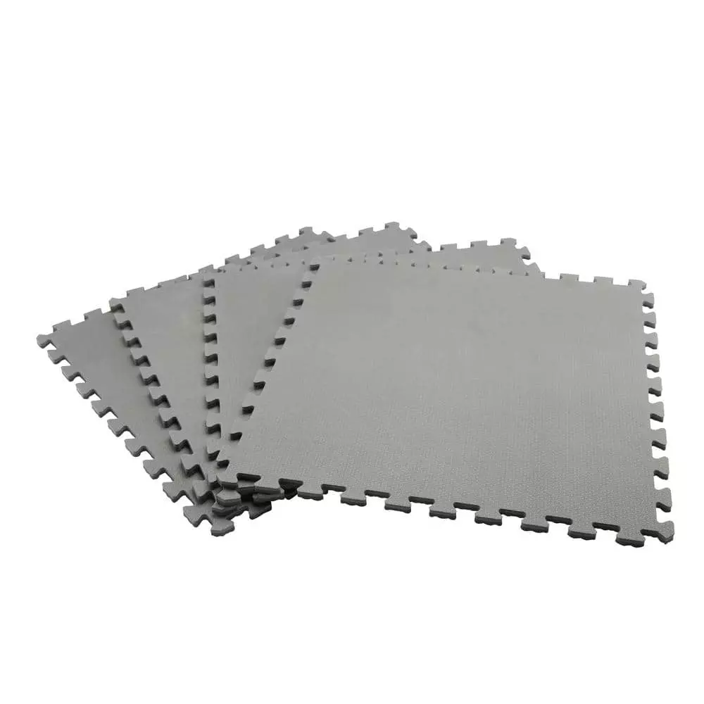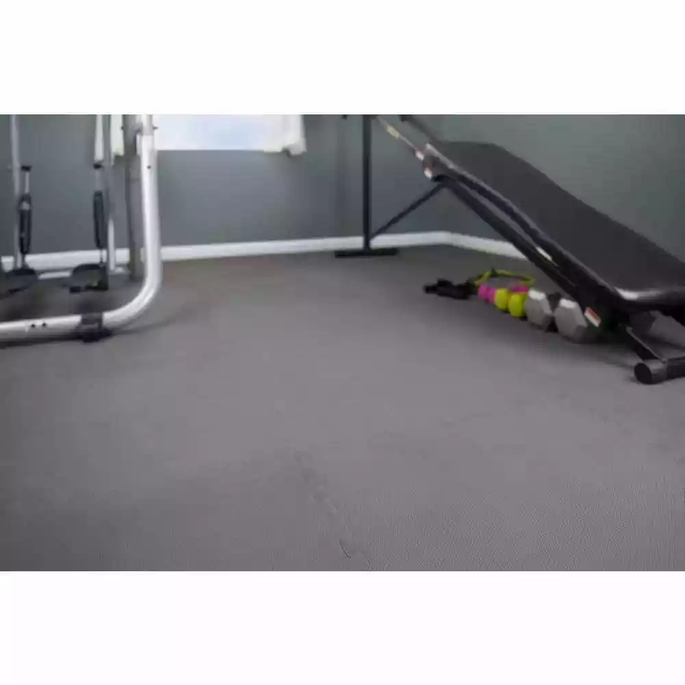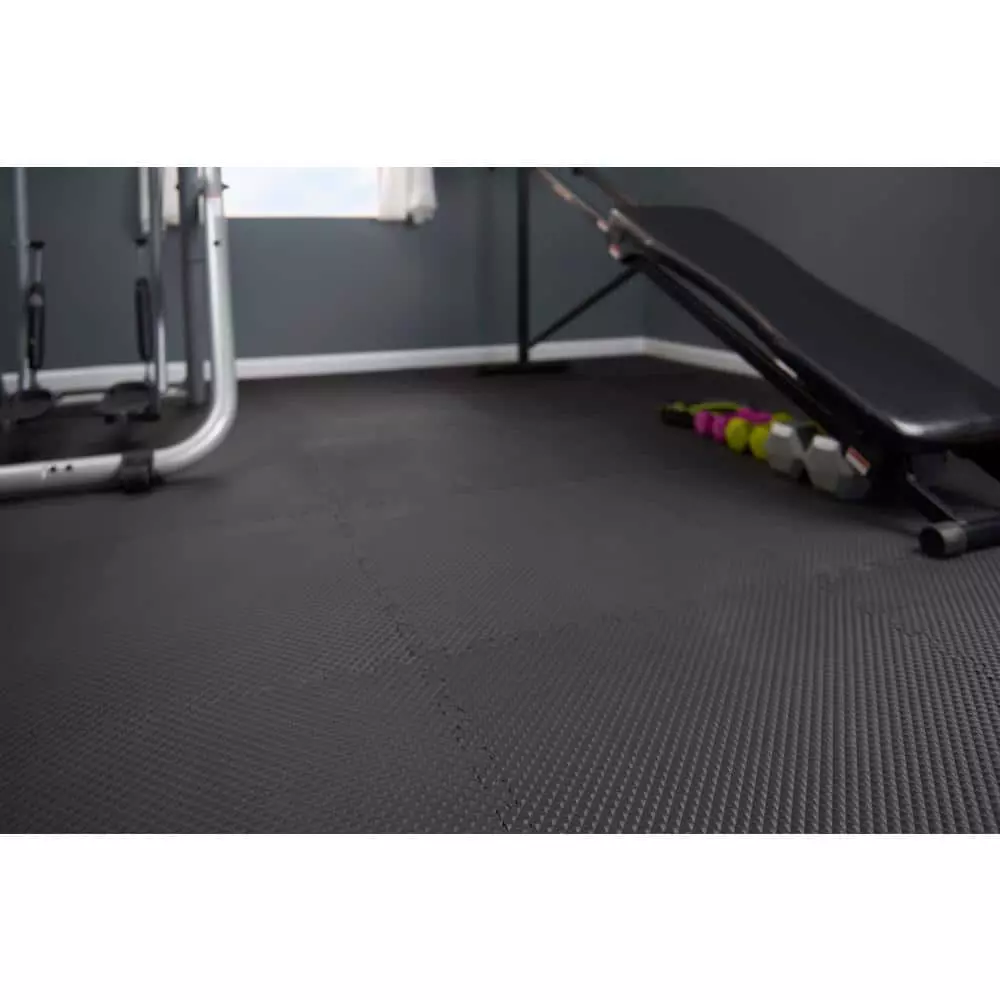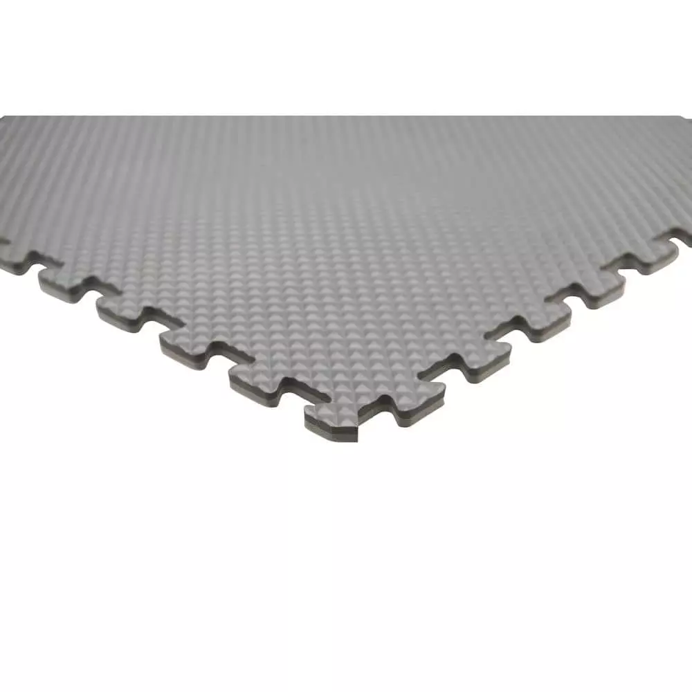TrafficMaster Indoor Black/Gray Dual Sided Black and Gray Foam Gym Floor Tiles feature two different colors and are offered in practical four-packs at an affordable price. This set Includes four reversible colored gym tiles and eight straight edge borders to provide a finished, uniformed look. Each interlocking gym floor tile is 0.47 in. thick and measures 24 in. (L) by 24 in. (W) for a total coverage of 16 sq. ft. Made from the high quality materials, this design is an extremely flexible interlocking flooring solution. These gym floor tiles feature black coloring on one side and gray coloring on the opposing side. These foam gym floor tiles are extremely durable and can be installed similar to other foam gym floor tiles with a variety of applications. TrafficMaster Dual Sided Black and Gray Foam Gym Floor Tiles are flexible enough to be used in a variety of multi-purpose applications such as home gyms, workshops, garages, basements as well as many commercial applications.
