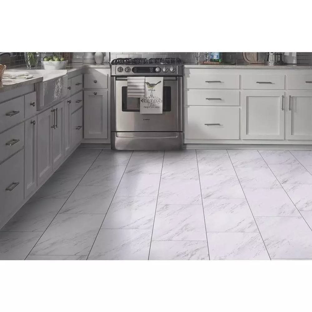 Trafficmaster By Carrara Tile Case) Marble Vinyl 12 In. (20 Sq. Ft. X 24 In. / Peel And Stick
