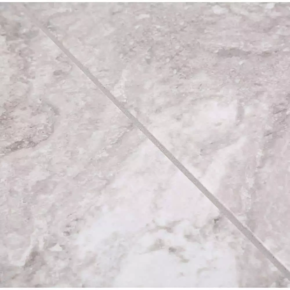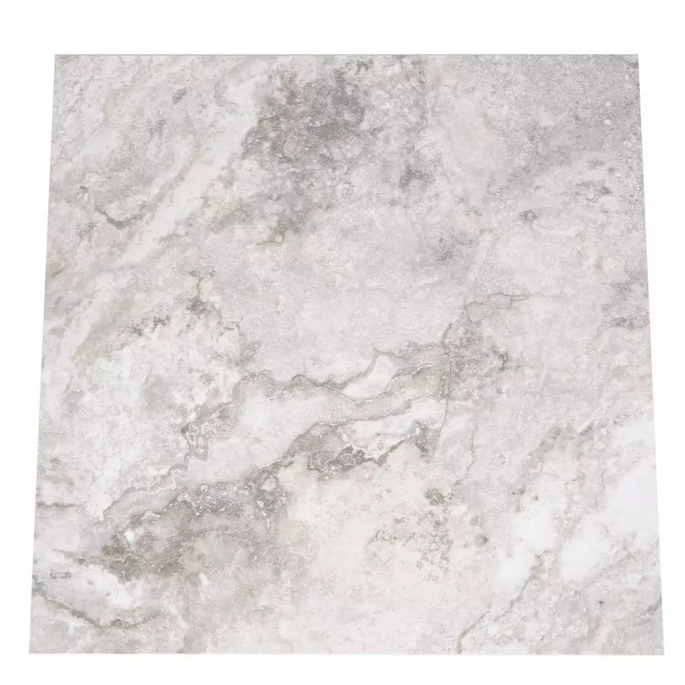 Designed for application with and without grout, the TrafficMaster Ceramica 18 in. x 18 in. Resilient-Vinyl Tile Flooring gives you the look of real travertine in deeply striated white and gray with less hassle and a far lower cost. It has rounded edges that allow you to install it throughout the home. This tile is suitable for installation over many subfloor surfaces.