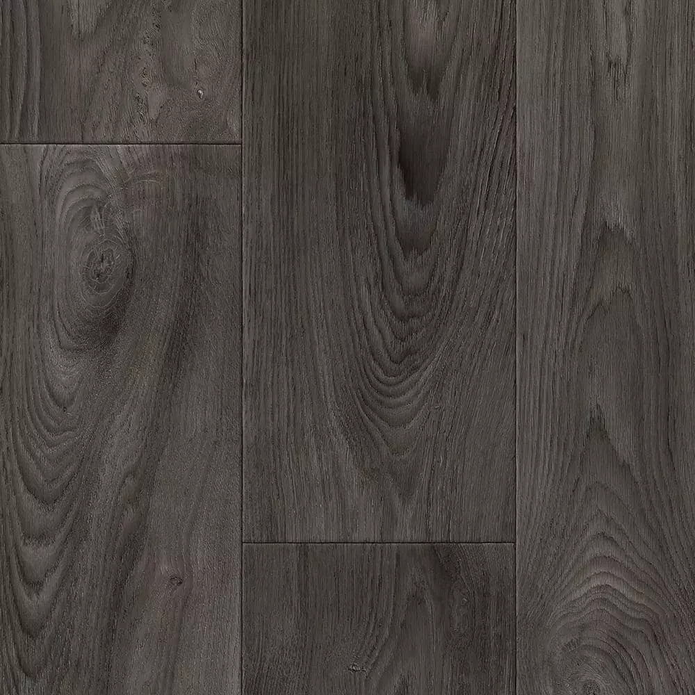 Contemporary vinyl sheet flooring in a dark grey hardwood look