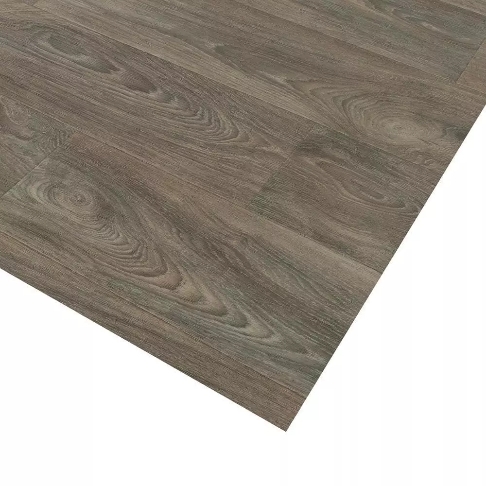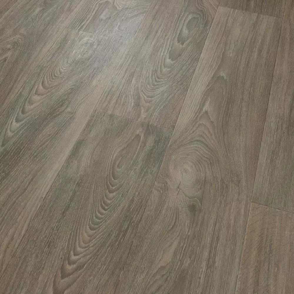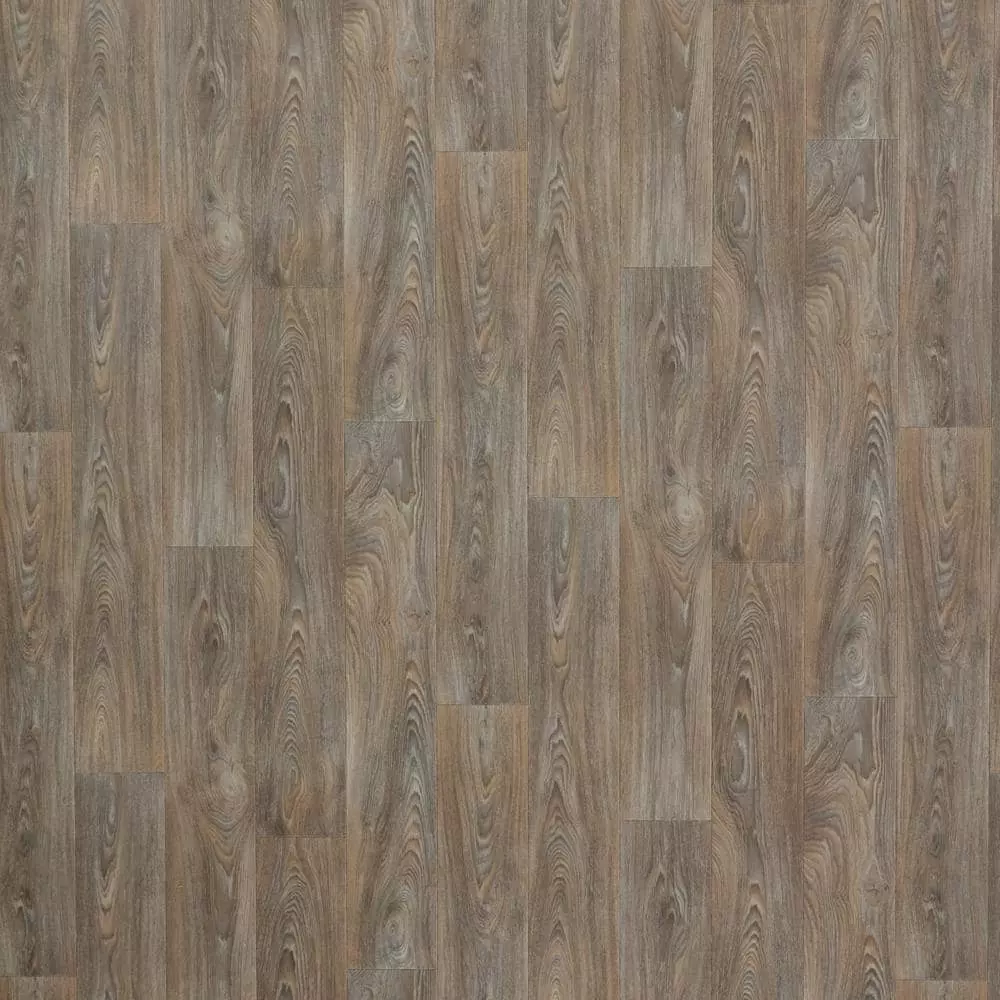 Light grey vinyl sheet flooring in a walnut hardwood look