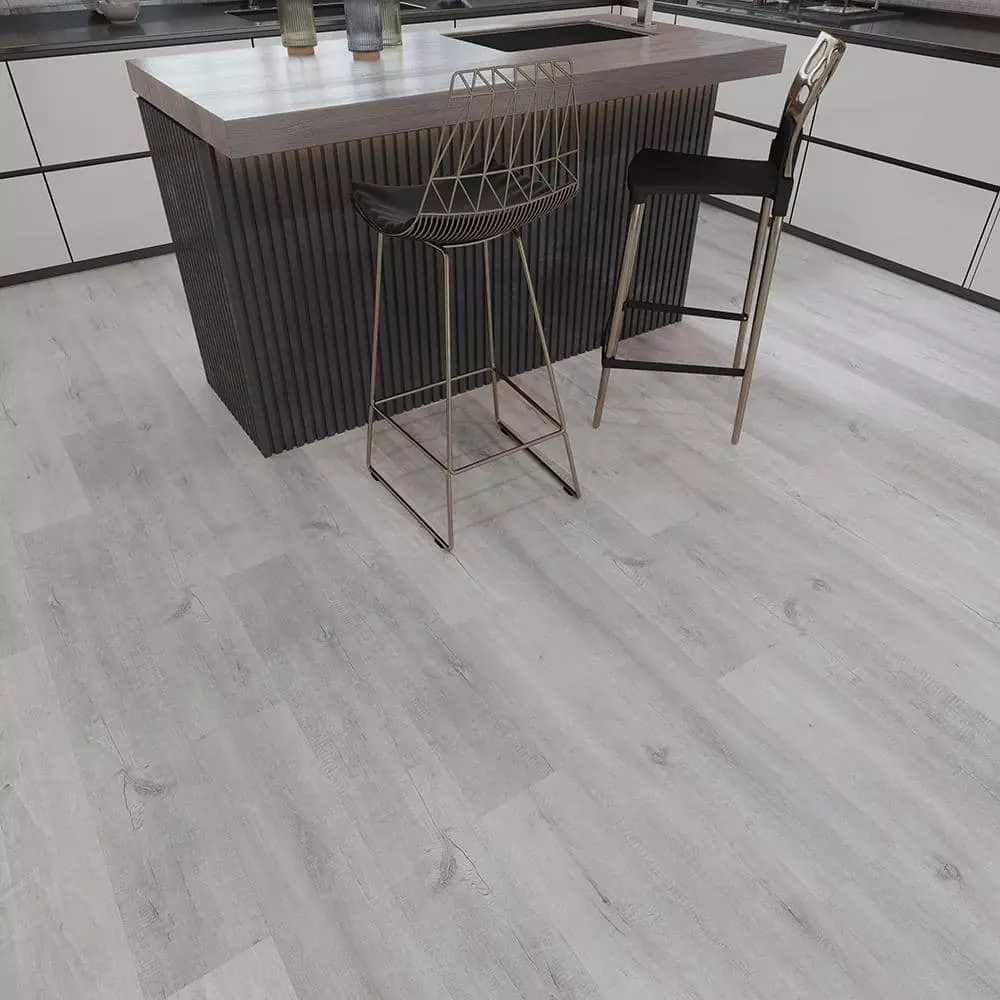 TrafficMASTER Mont-Orford Gray Oak SPC flooring is waterproof making it a great choice for all your rooms including kitchens, bathrooms, and laundry spaces. It even comes with a 3-year warranty for commercial setting use. With a size of 4.4 mm thickness x 7-3/16 in. width x 48 in. length, it is DIY friendly with a click locking system for fast installation. Classic style blends comfort and softness for a look that’s timeless.