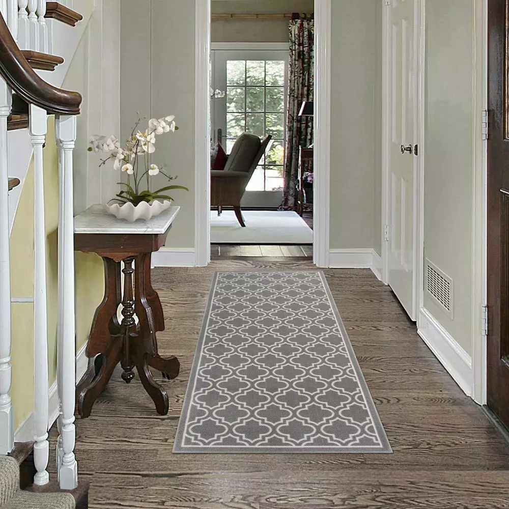 Gray-hued trellis pattern adds an elegant touch to your decor