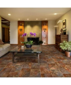 Trafficmaster Slate Flooring Sheet Stone Vinyl Cut To Length 12Ft. Wide X Residential Square Neutral