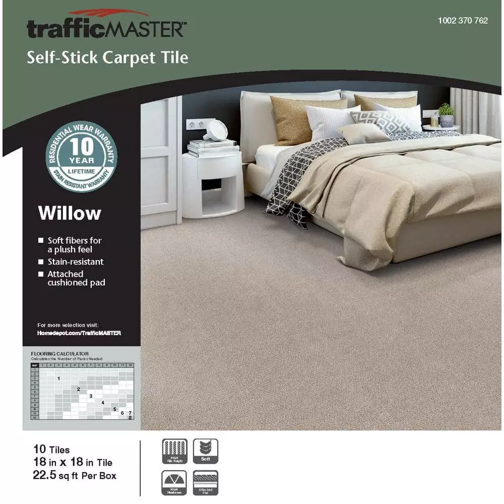 - TrafficMaster Willow Kirkdale carpet tiles are Peel and Stick DIY installation; easy to install, transport, store and replace